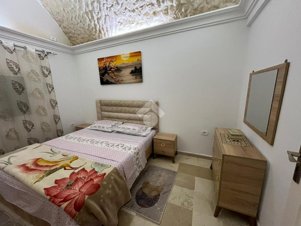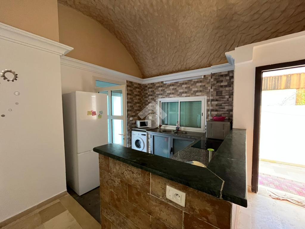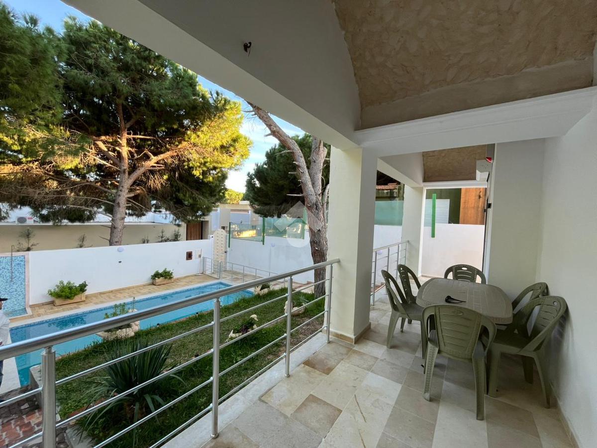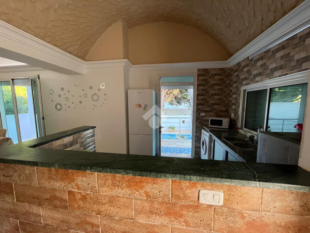 Cette villa meublée est située au sein d'un quartier calme à corniche Bizerte. Offre un espace de vie moderne et spacieux. Dès l'entrée, vous découvrez un salon spacieux et lumineux grâce à ses multiples ouvertures qui donne l'accès directement à la terrasse et à la piscine ainsi qu'un d'un jardin parfaitement entretenu La cuisine est entièrement aménagée avec des éléments de rangements et équipés avec , une plaque de cuisson, , un four électrique, un micro-ondes, une machine à laver , et un réfrigérateur, et ouvre sur la terrasse, La partie nuit loge deux chambres à coucher la premier chambre est équipé par un lit double et un dressing , la deuxième chambre est équipe par trois lit et un dressing Elles se partagent une salle de bain commune. Pour assurer le confort des résidents, elle est équipée par une climatisation par split. Pour plus de sécurité, une alarme de sécurité est disponible.