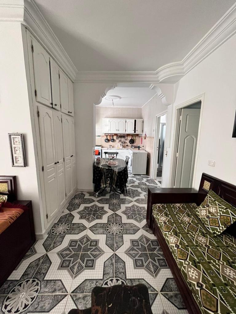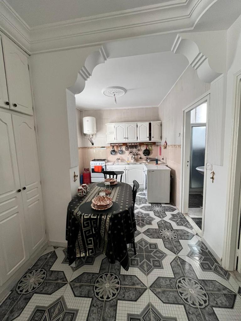 Le 1er étage est un appartement S+2 comprenant un salon spacieux, une cuisine agencée, deux chambres et une salle de douche.